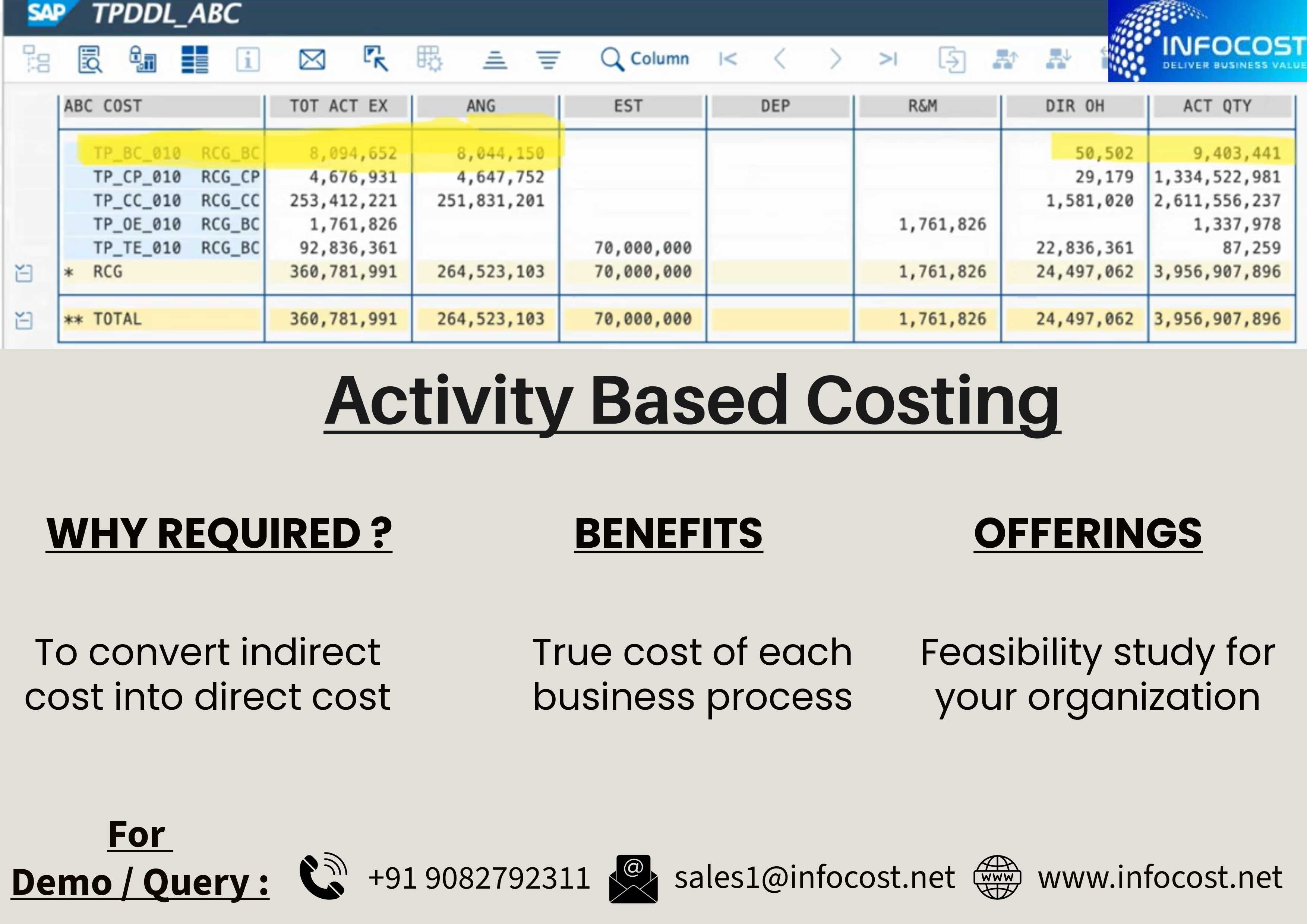 Infocost offers expert assistance in implementing Activity Based Costing processes in SAP, helping businesses achieve accurate cost calculations. Our proficiency in SAP Costing and SAP Finance drives effective financial management.