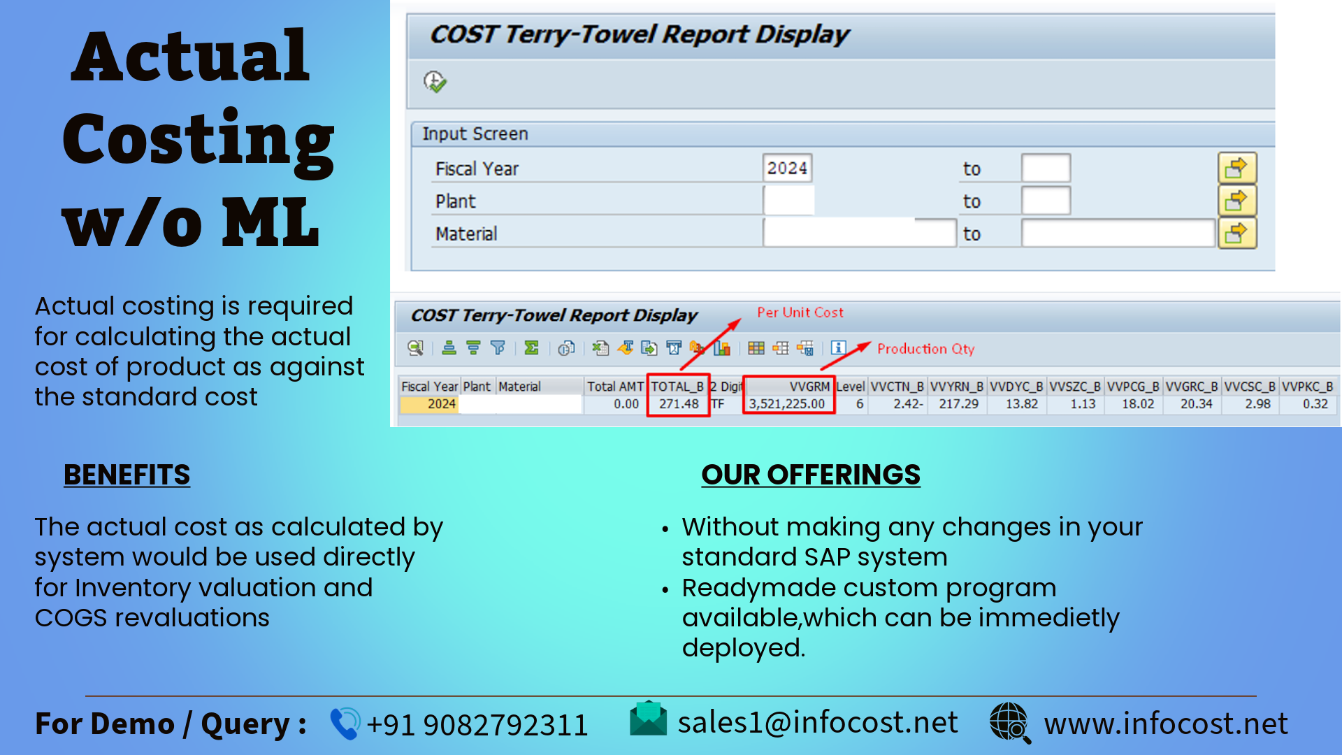 3. GL level material cost and fixed cost would be taken into considerations to calculate the total actual cost – It makes the finance team answerable
