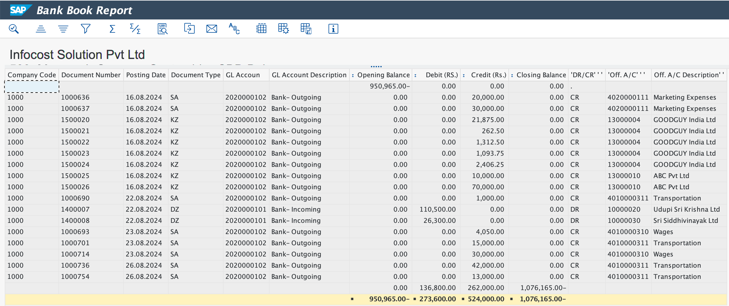 1. In SAP there are 3 Bank GL are there i.e. Main, Incoming and Outgoing, we will take all the 3 GL accounts for a particular house bank and generate this report.