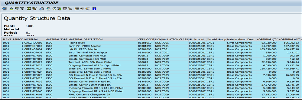 Quantity chart is the key report required for all type of reporting in MIS and Costing related requirements.