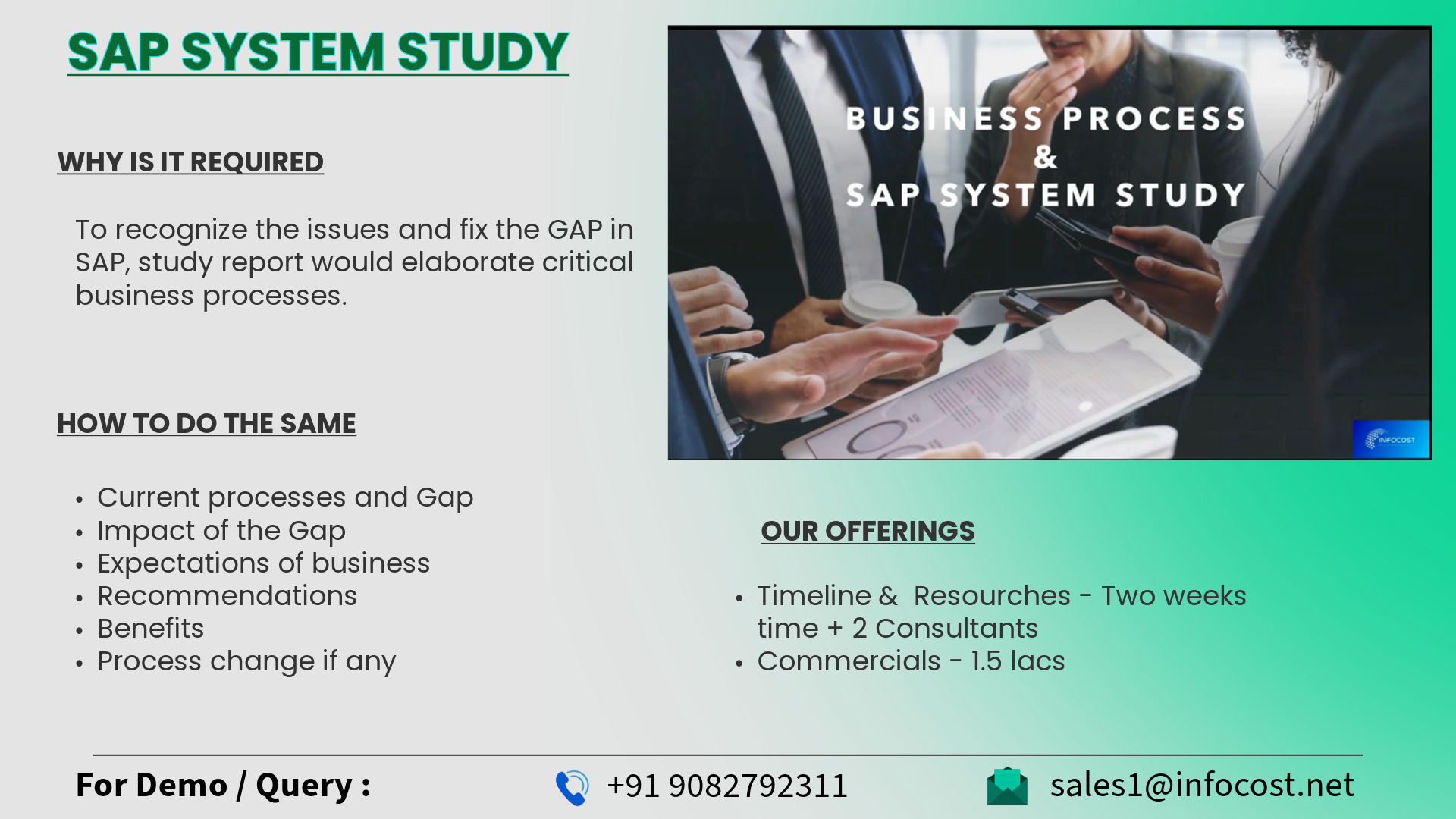 Just like a Doctor prescribes certain Blood test, X-Ray, ECG etc. before giving us medicine, In the same line we should carryout study of our SAP systems & business processes.